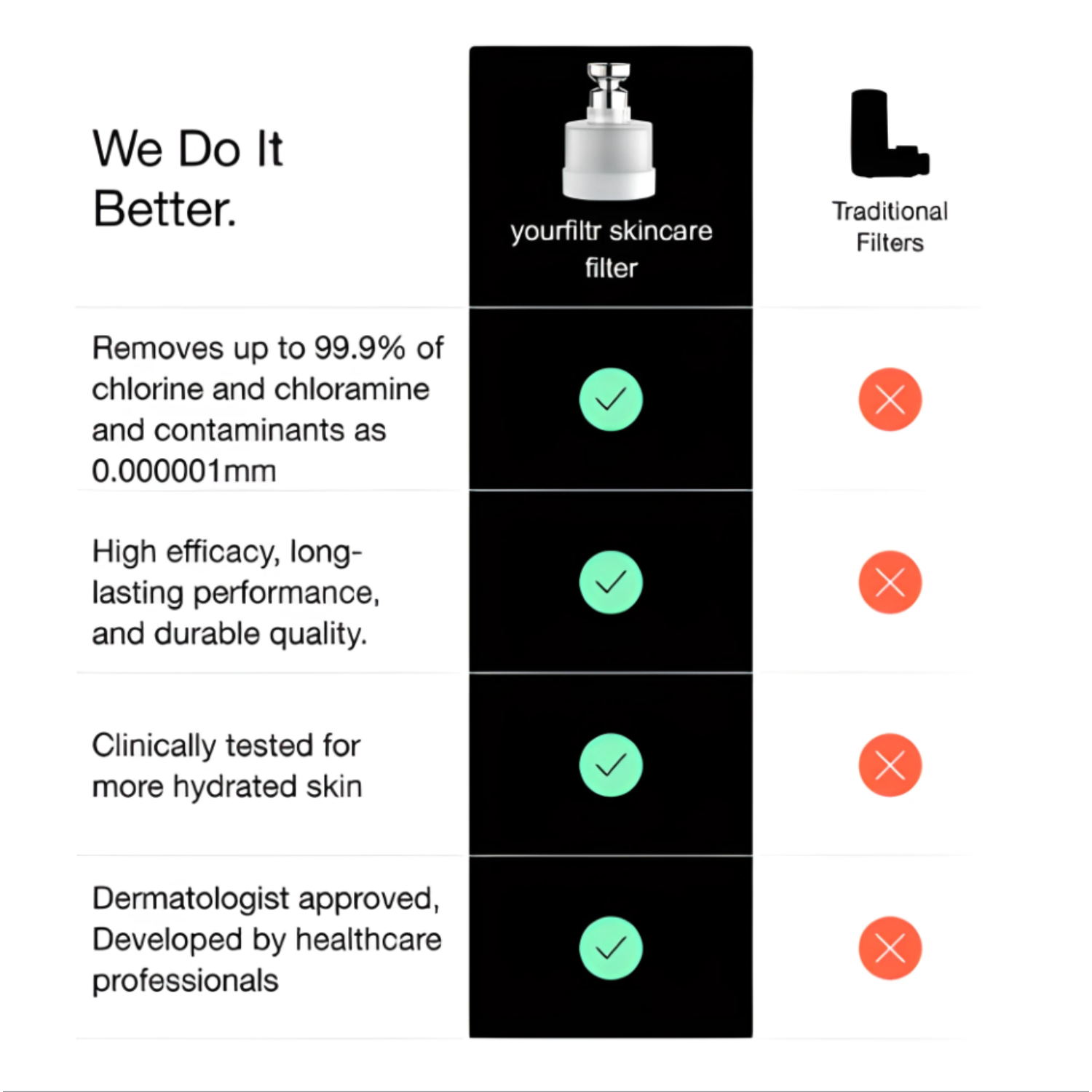 Yes! Many choose yourfiltr because they suffer from painful flare-ups linked to harsh tap water. By reducing chlorine, chloramine, and irritant minerals, yourfiltr creates gentler water that’s kinder to sensitive skin. After only a few weeks of washing with yourfiltr, many report fewer flare-ups, calmer skin, and relief where creams and prescriptions failed.